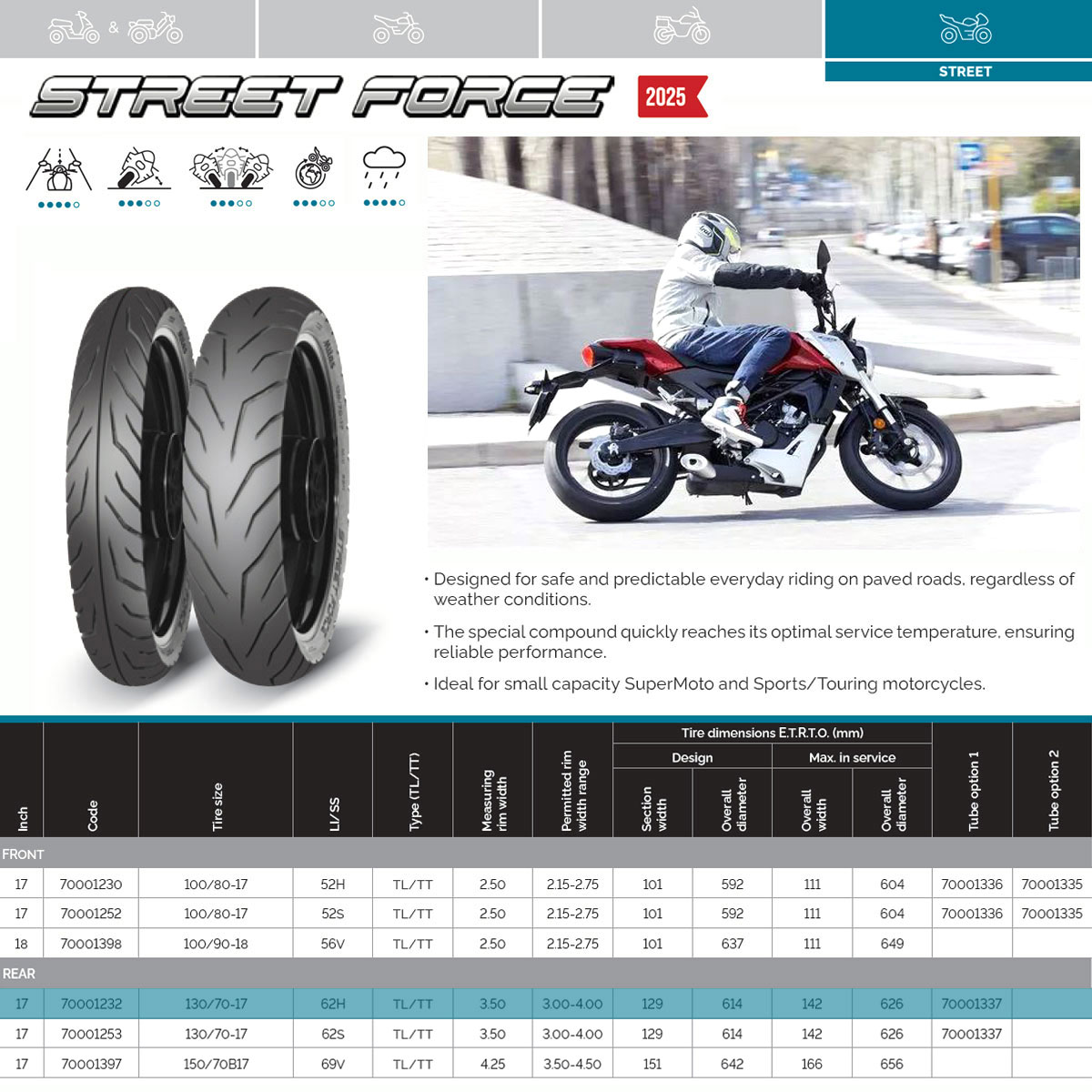 NAD. GUMA 130/70-17 62H TL/TT STREET FORCE 210 km/h MITAS NEW* количина