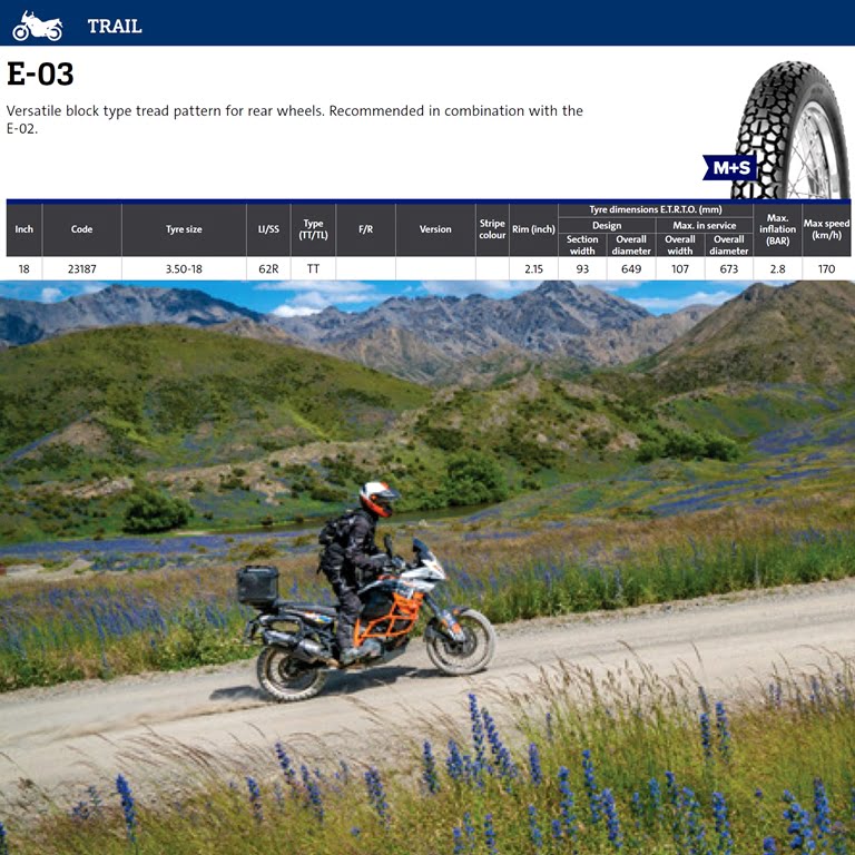 NAD. GUMA 3.50-18 62R TT M+S E-03 ZADNA REINFORCE MITAS*