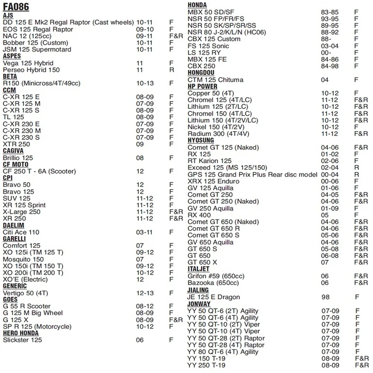 / PLOCKI FA 86 225102590 HONDA RMS ITALY
